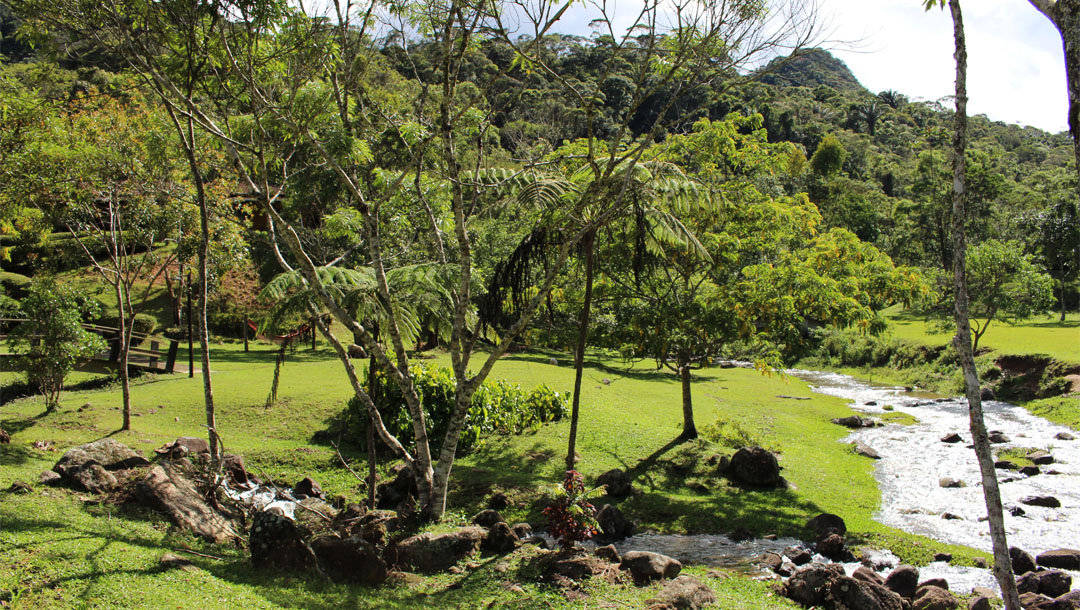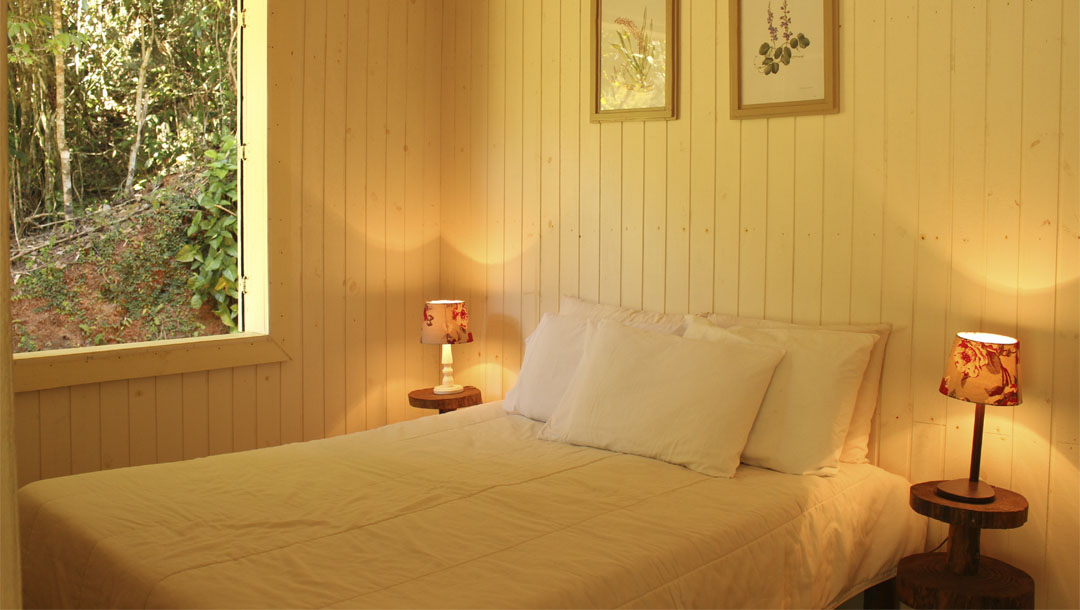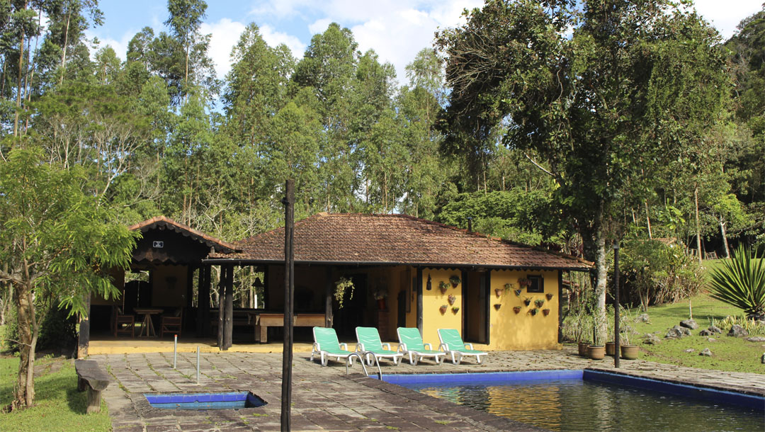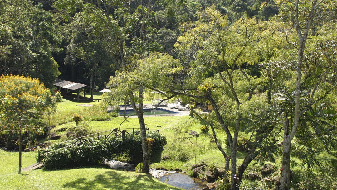 Num vale cercado de montanhas de mata virgem, cortado por 2 rios e 1 cachoeira exclusiva, a sensação é de ter chegado ao paraíso. Durante o dia, céu com sol deslumbrante para caminhadas, banhos de rio, piscina ou cachoeira de água mineral. À noite, céu estreladíssimo, lua clara, vagalumes e o friozinho que pede lareira acesa e aconchego.